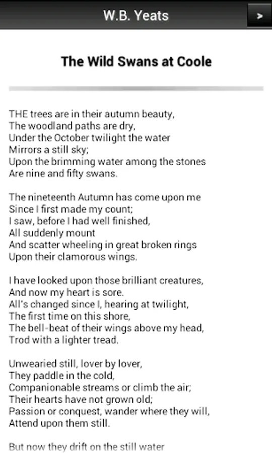 A collection of poems selected by William Butler Yeats entitled The Wild Swans at Coole (1919).