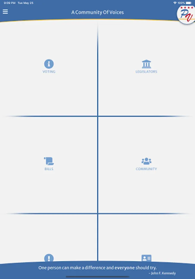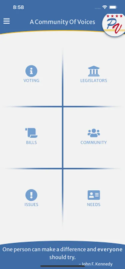Don't just wait for a National call to action to call or email your legislators. Over time develop effective citizenship habits that will influence change that works for all of us in communities everywhere. We are people who are Citizens in a system. Engagement is key and PV realizes people are in different spaces in their ability to do so. You should always have access to your lawmakers. Use the app to connect to their email, phone, and social sites to learn more about what they are doing in the community and to support them in their work for you. We believe everyone should exercise their power to engage and connect. Have that Power conveniently on your mobile phone for quick access and during National and State call to actions for causes you believe in! Get more personal locally through grassroots organizing. You never know what tips you may receive to get you thinking outside your box, beyond your biases and/or stereotypes, and connecting you with your neighbors. This is an asset for you. Don't expect a million notifications we want you to keep us. This App is the 1st of its kind connecting citizens across the Country in the same space to their lawmakers digitally at the touch of a button.