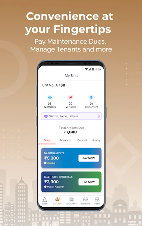 View and Pay all your Community Maintenance Dues. Through the Integrated Payment Gateway, you get multiple choices for payments & instant receipts.
