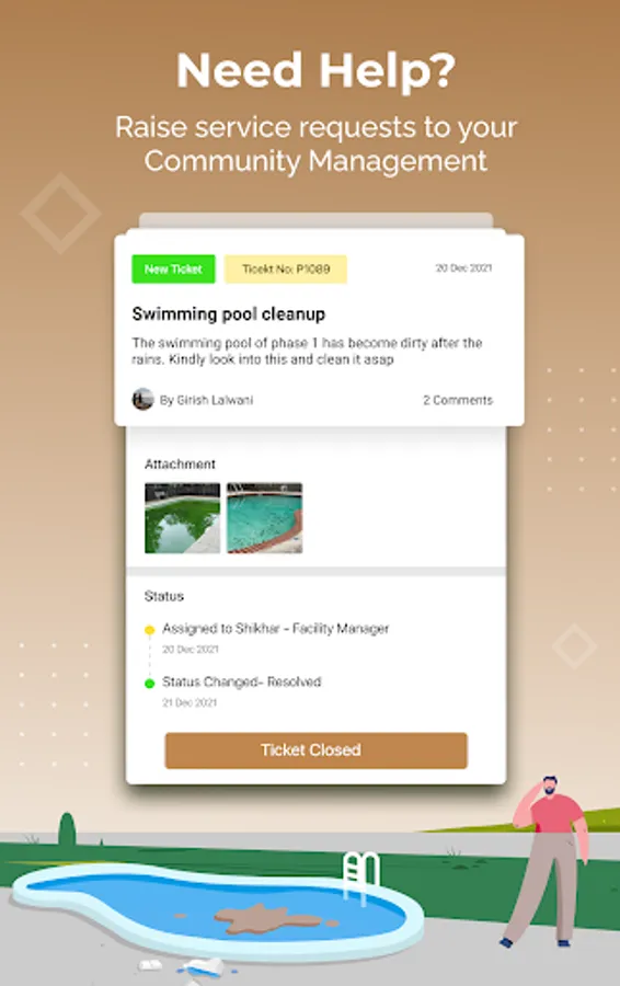 Have a leaking tap or seepage in the ceiling, which you want to report to the Community Maintenance Team? Do it right from this App. Take photo, for ready reference of maintenance team, and track the progress to closure