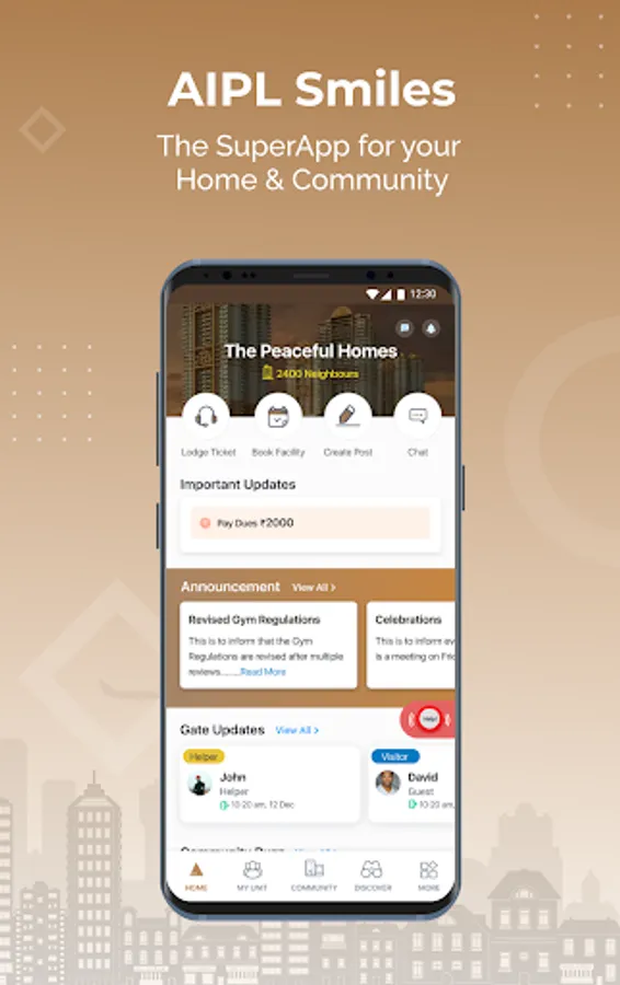 Experience Smart, Futuristic Community Living with the AIPL Smiles App - A One-Stop App for Owners / Tenants living in Residential Communities for managing everything related to Home and Community.