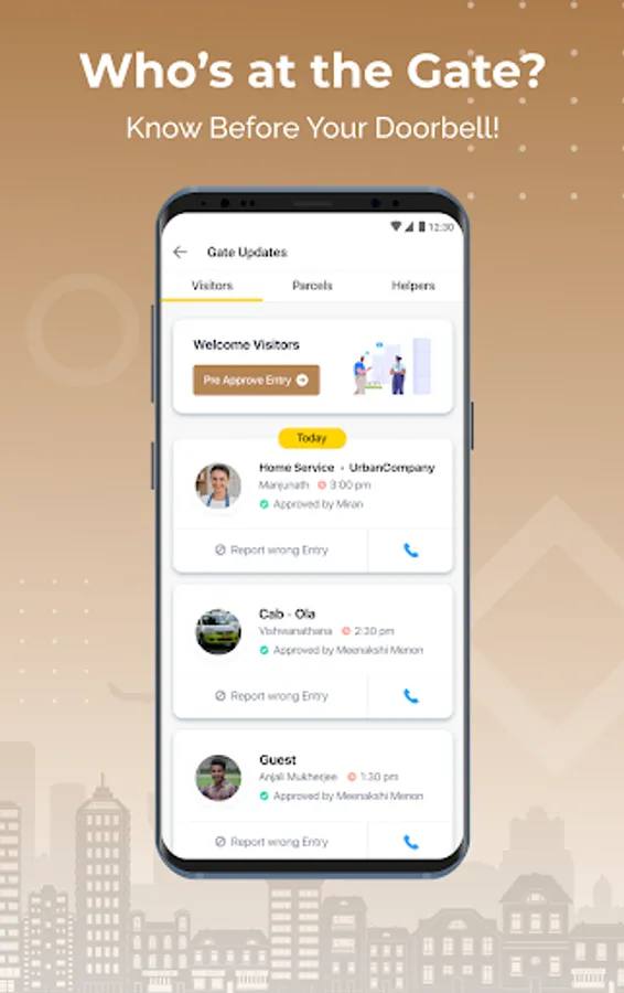 Manage Visitors: Pre-Approve Guests and make them feel welcome. Approve, Deny visitors right from this App.