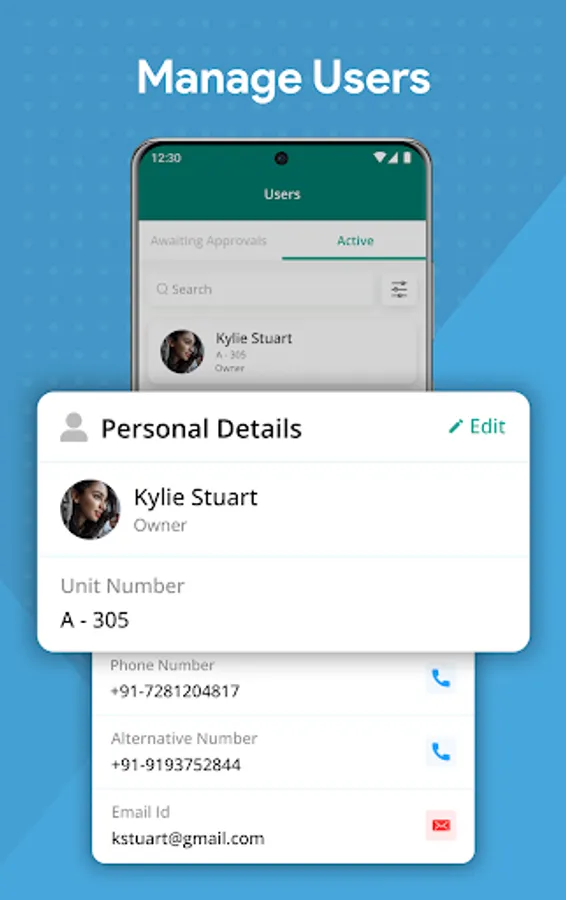 * Member Management - Add, Approve or Reject new members and manage resident information, quickly. At one glance you can view all the users who are pending approval to join your Community. You can easily Approve/Reject the request to join your Community. You can also easily add new users.