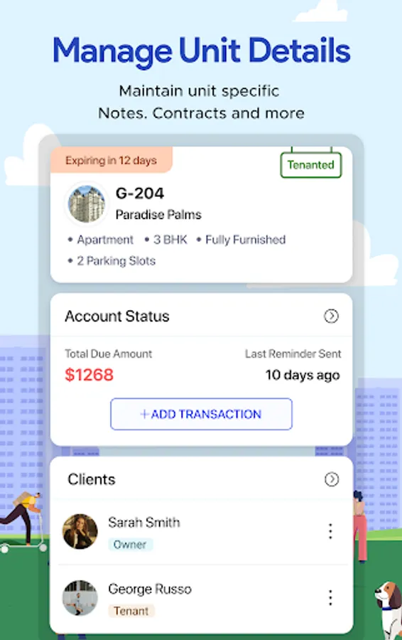 Manage all Unit information, starting from contracts, rentals, documents in one central place. Why keep using messy files and folders, when you can store all your documents such as rental agreements or any other important documents in our app, in an organized manner.