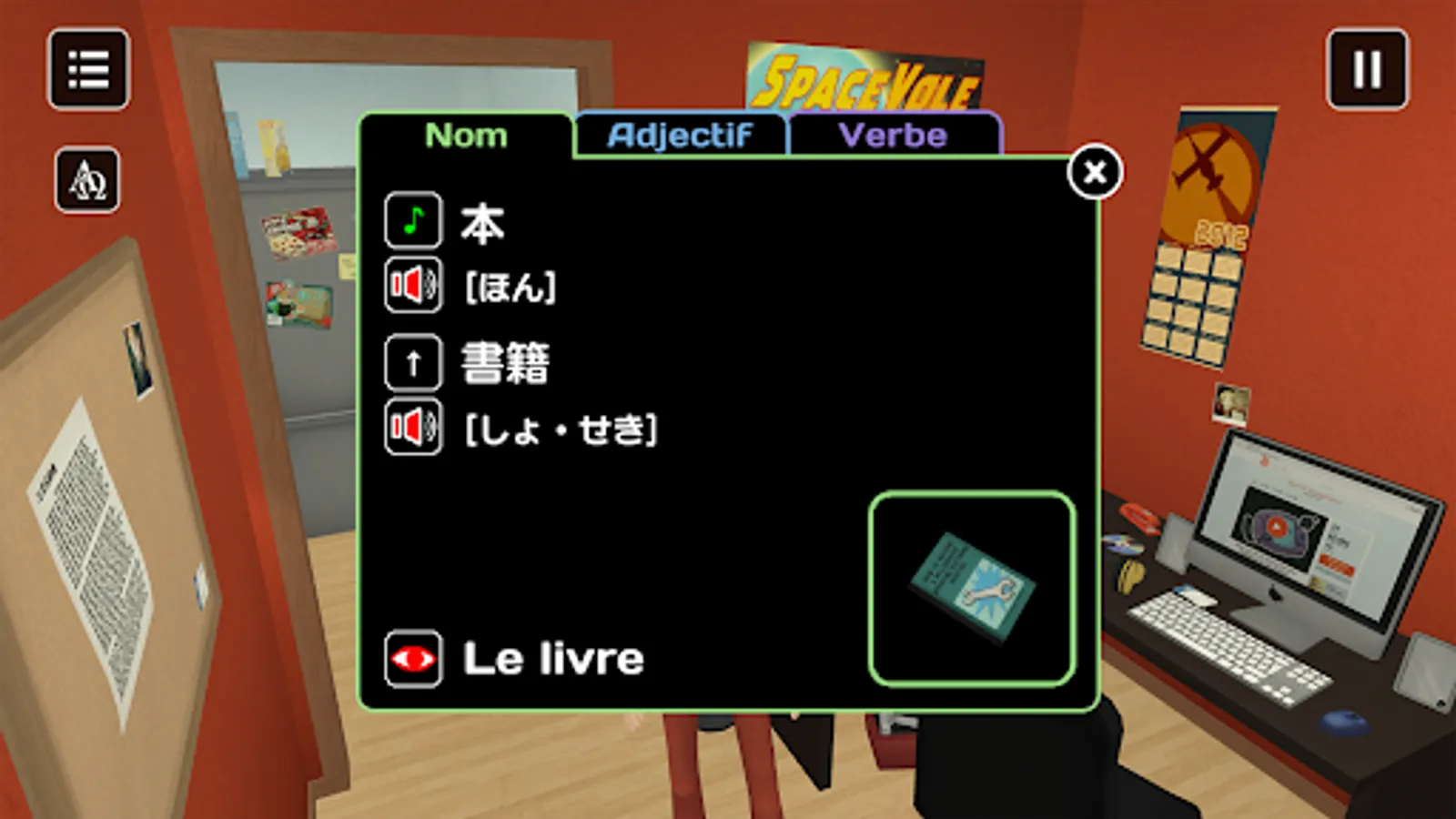 Inspired by Dreamcast titles of old (namely Shenmue and Toy Commander) Influent immerses players in a fully interactive 3D environment where the names for absolutely every object in the game can be gleaned with a single tap! In fact, even more information can be learned with a double-tap! Every door, drawer, and cabinet can be opened with a tap-and-hold, revealing more things to be learned! Packed to the brim with hundreds of native audio pronunciations (painstakingly recorded specifically for this game), Influent offers players of all ages a unique opportunity to enjoy learning both vocabulary and pronunciation in the language of their choice.