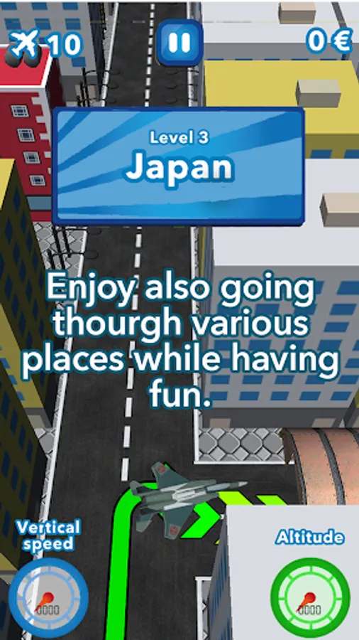 ● A very careful aesthetic and with incredible 3D graphics, you can fly through different countries and cities, New Zealand, New York, Tokyo, Dubai you can land a fighter plane in the middle of the city.