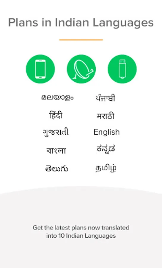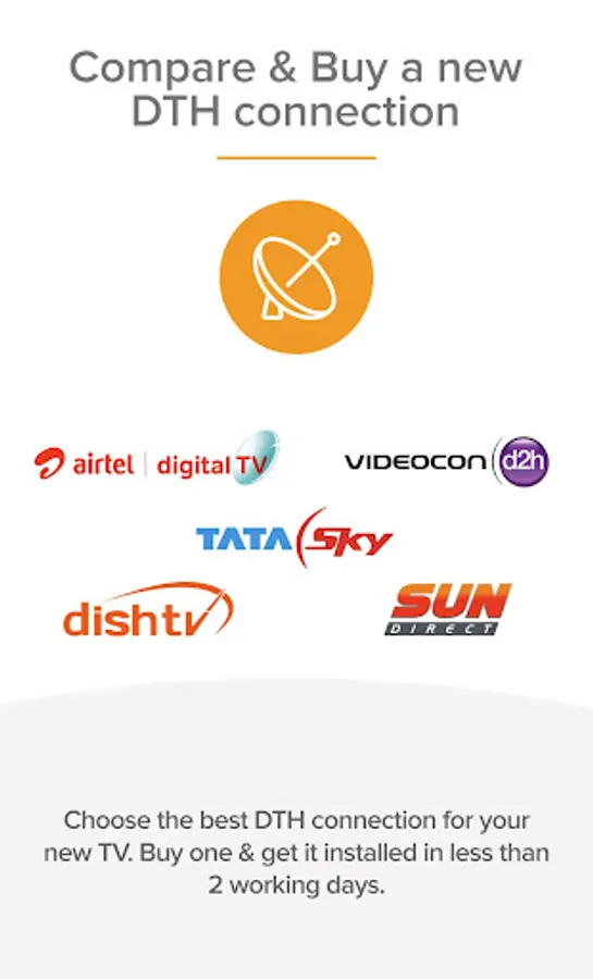 Recharges, Bill payments and Plans from all telecom and DTH operators. Supported are Jio, Airtel, Vodafone, Tata Docomo, Idea, BSNL, MTNL, Tata Sky, Videocon d2h, Airtel Digital TV, SunDirect & DishTV.