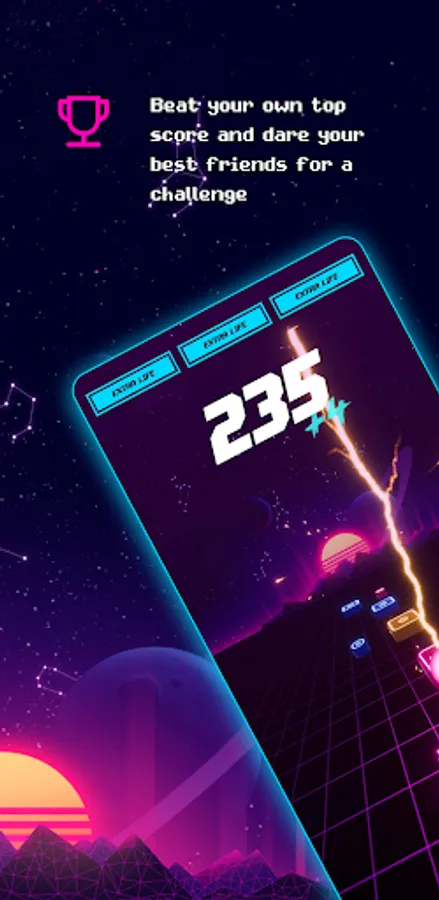 Are you ready for this mobile game with one-touch control where only the best say it's easy to play? Its breathtaking 3D visuals and effects will make you jump over tiles for hours! For starters, try beating your top score while hopping with the ball. Then, challenge your friends and compare your record with worldwide players of this game on the ranking list!