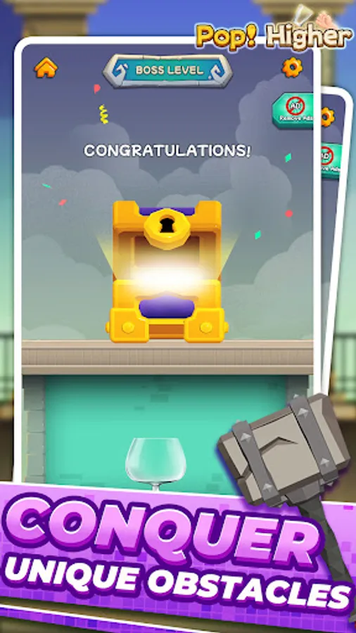 This is a classic game that challenges your reaction speed! Pop ! Higher is a retro-style cup tapping game. In the game, you will be an adventurer. By tapping the floors, you will use the power of elasticity and inertia to shoot gold coins from one cup to another higher cup . Each floor has different adventures and difficulties. You need to show the wisdom and strength of an adventurer to bravely break through the levels and explore unknown treasures.