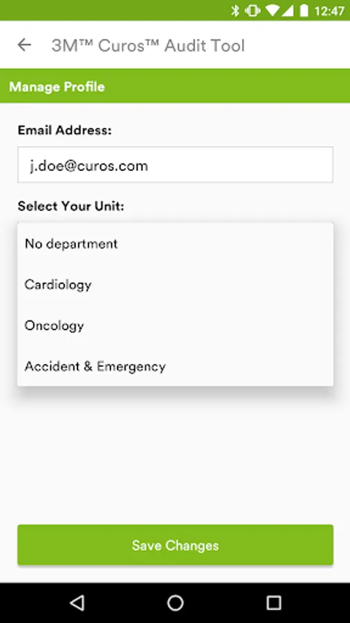 This app has been developed to aid the auditing process when using Curos™ Disinfecting Caps. The purpose of auditing is two-fold: help users form new habit through accountability and understand current compliance rate. The mobile app provides a modern and streamlined solution to enable the completion of Curos™ Caps compliance audits, saving healthcare professionals precious time in both the completion and analysis of audits, and benefitting the overall accuracy of audit execution.