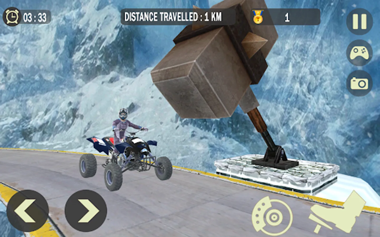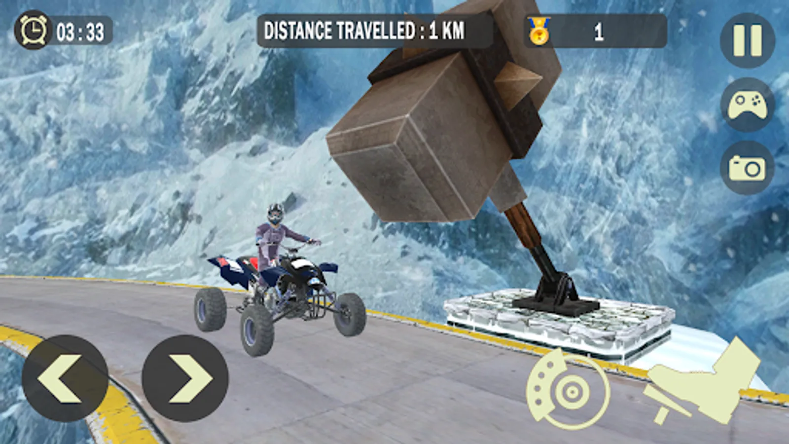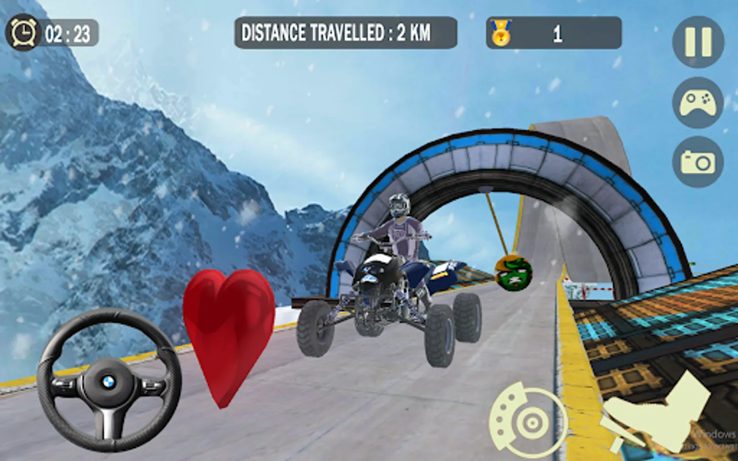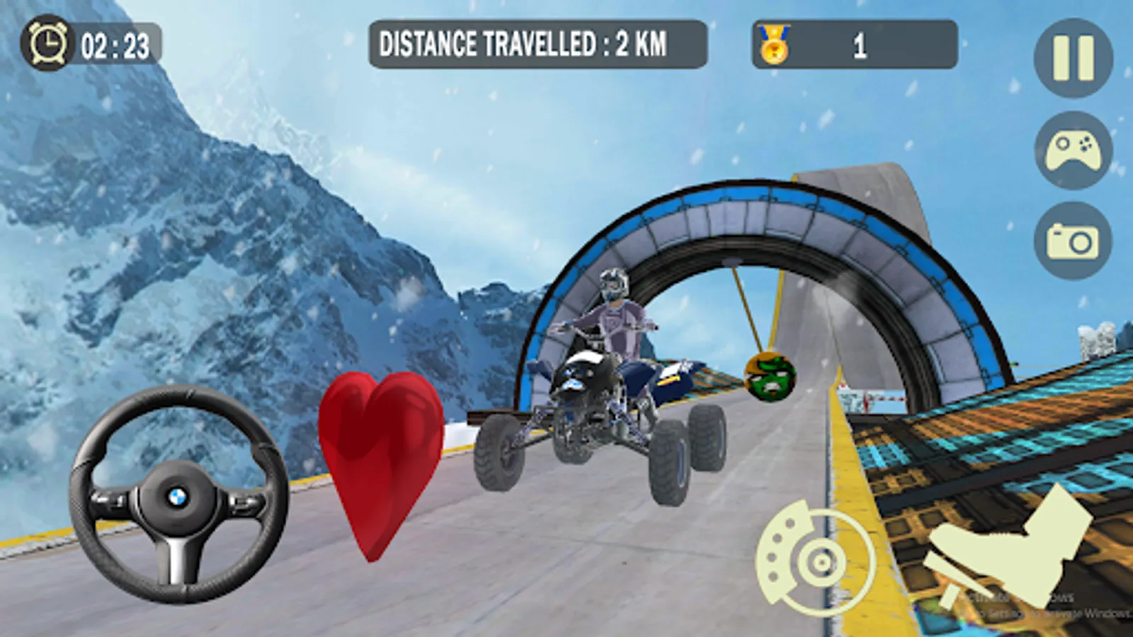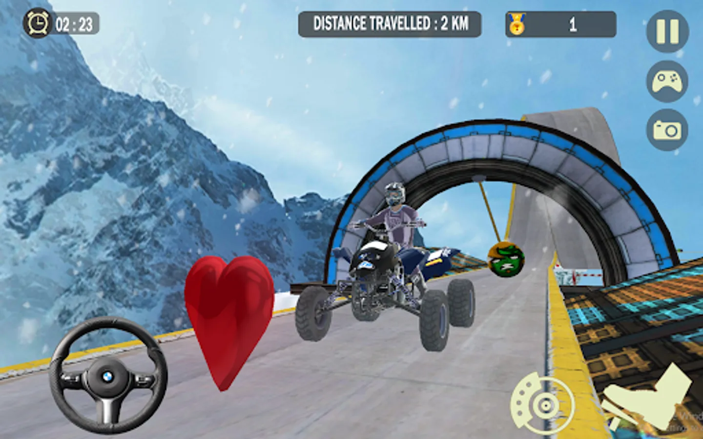 Play this impossible driving with crazy light ATV bike driving simulator impossible sky tracks. In this Impossible Ramp ATV Bike Stunt game you have many sky-high mega ramp gt bike stunt missions. ATV bike racing of ATV quad bike jumping stunts and racing challenge on adventure tracks. Take one level high in the light ATV stunts world. The worldβs longest stunt racer Ramp has been set. Take your air stunt with a nitro ATV bike. Smash the dangerous air race with other ATV bike racers and beat the ATV bike racing stunt rivals. Using turbo nitro engine, enjoy rapid nitro power for extreme gt quad moto stunts. Keep racing and give race and gas, feed your passion for speed ATV bike racing adventure.