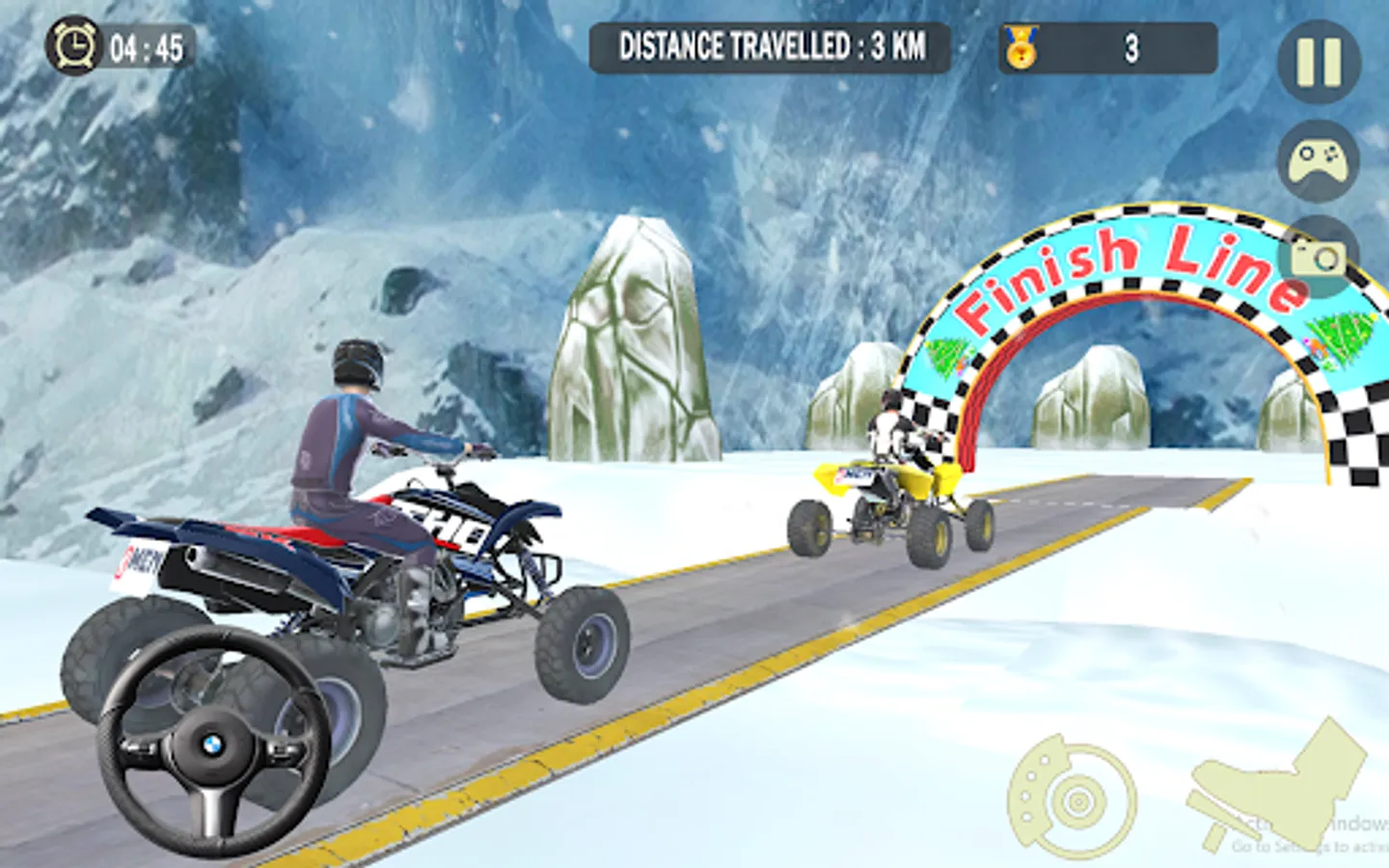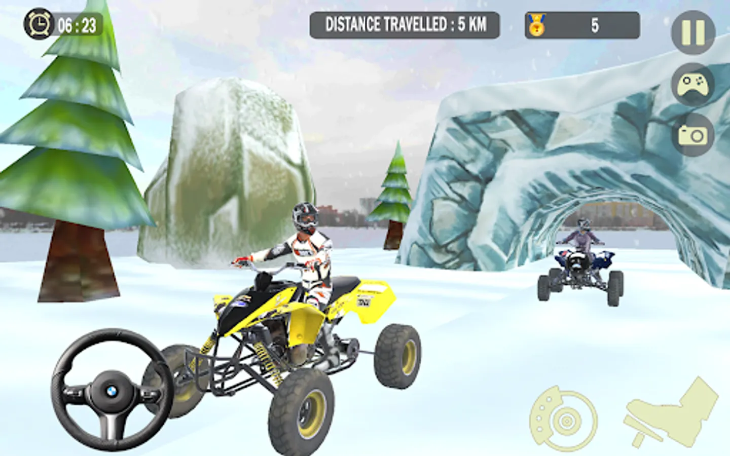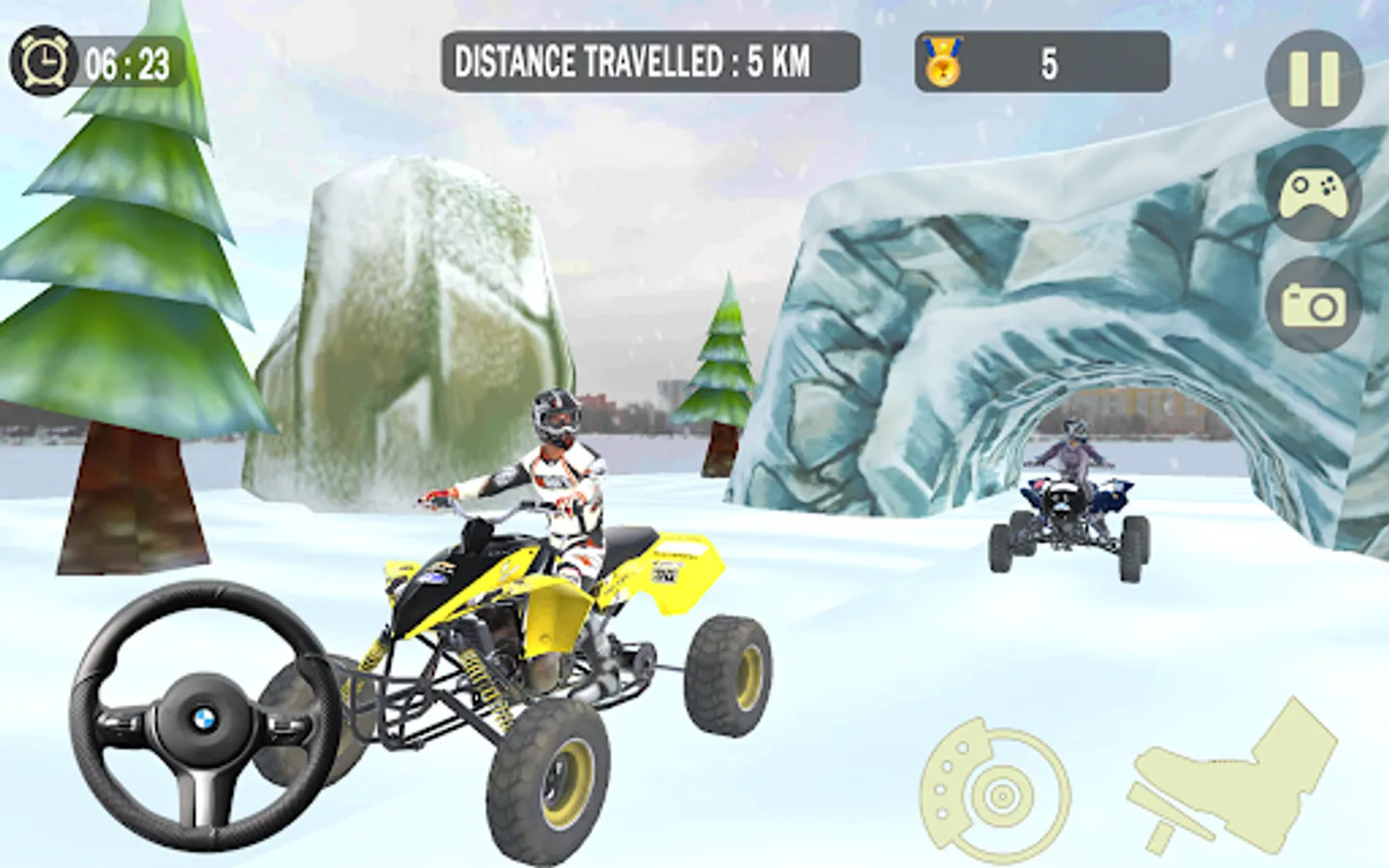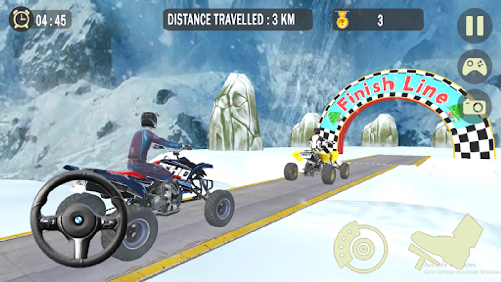 Santa Snow ATV Bike Racing 2k21 brings amazing entertainment for lovers of fun and adventure. This is a fun and racing package in which you maximize your best ATV cycling skills in snowy areas. This game becomes more interesting when you find yourself as Santa Klaus Snow Bike Rider which makes your face happy and cheerful. Not all snow games are the same in terms of entertainment, here you will find an amazing combination of Snow Sled competitions. These Snow Bike Racing League competitions have many of the best ATV riders Who intend to compete in this league. To win this race, you must improve your driving skills, you will feel blessed by wearing a Santa Claus costume. Santa is not only an ATV Bike Rider but also a great car driver. Do not hesitate before entering the cycling mania, Santa Trial is the second name of this game. Explore all of these snow-capped mountains as Santa Bike Rider in the snow game. This game is the snow season and Santa's Christmas, both have more expectations for everyone.
