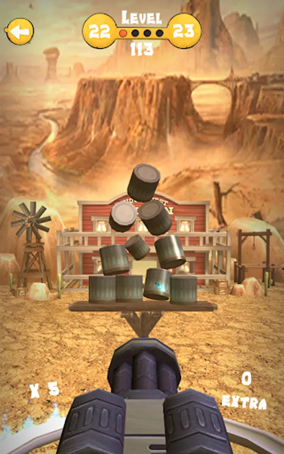 This game contains different weapons and different environments, complete all levels and collect diamonds to unlock all weapons and Environment Themes!