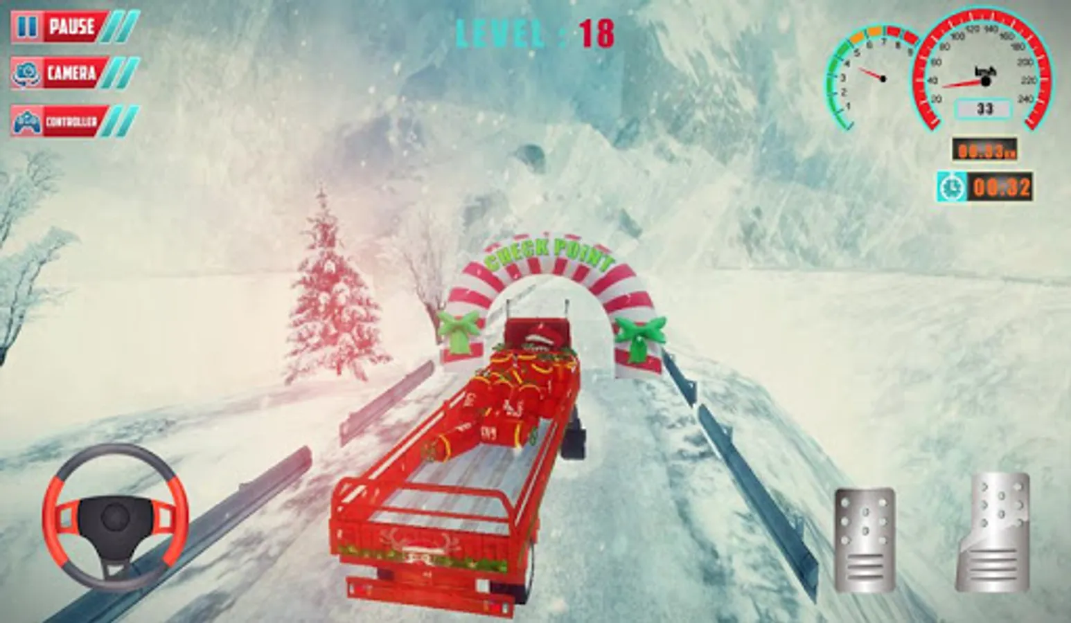 Rush driving on snowy roads. Tough Santa clause driving job. Let the Santa fly down to the destination and deliver the gifts. Drive down on treacherous tricky roads with hints of ice and moist tripping tires to make a vehicle go off-road. Don’t crash and burn Santa deliver truck. Chrismas Hill Climb Truck Driving Game is the game of perplexing parking in front of gift receiving kids’ homes.