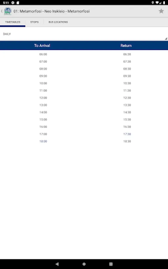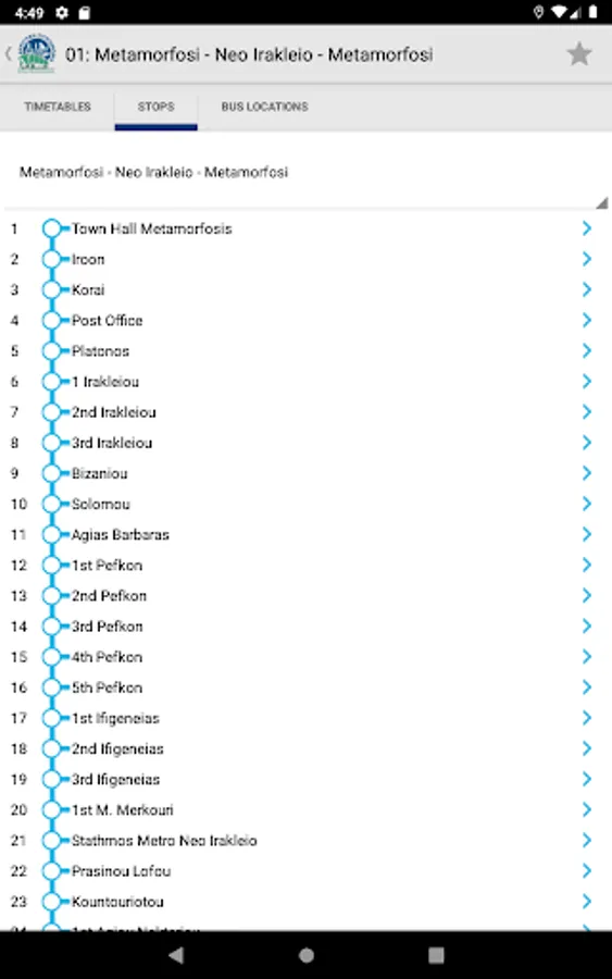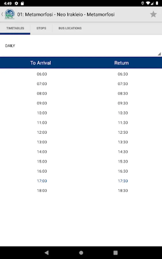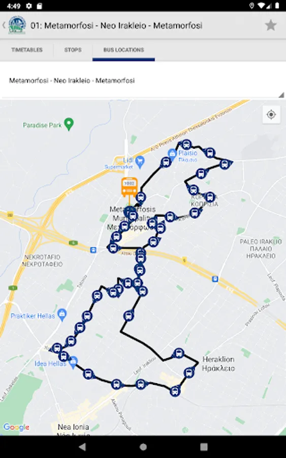With this application, you can easily access real-time information on bus schedules, arrivals, and locations in Metamorfosi. Whether you're a resident or a visitor, this app can help you plan your trip and get around the city more efficiently. Simply input your location or destination and the app will provide you with the nearest bus stop and the expected arrival times for each route. With this information at your fingertips, you can save time and avoid the hassle of waiting at the bus stop.
