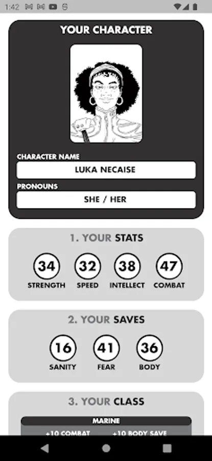- One-Click Character Creation: Randomly generate an entire character with one tap, everything from stats and saves to their name and portrait.