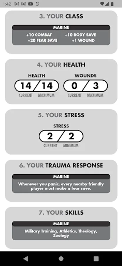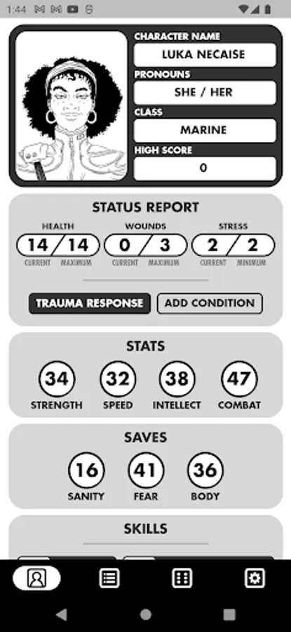 - Detailed status tracking: Keep track of your health, wounds, Stress, ammo, and other conditions with just a few taps. No more erasing and re-writing over and over.