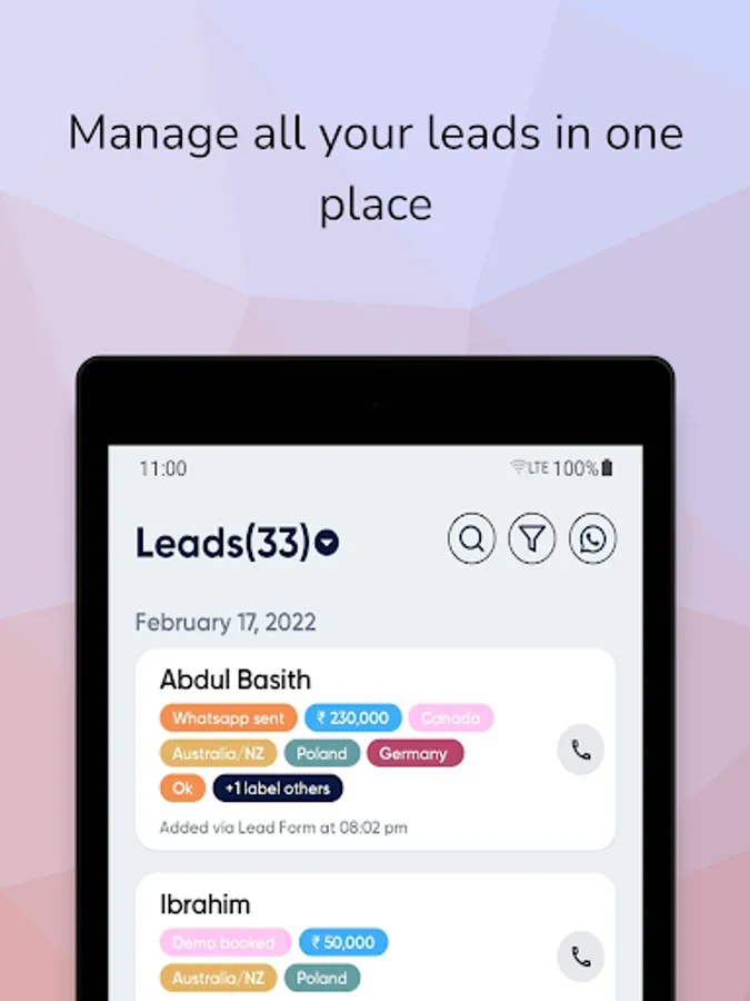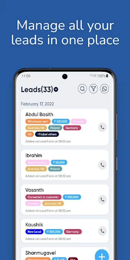 ⭐Automatically Sync leads from 10+ sources including indiamart, tradeindia, Facebook, Website, Zapier