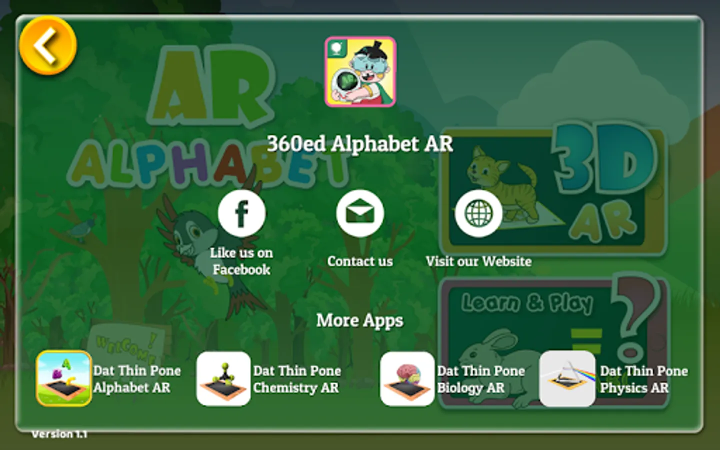 360ed Alphabet AR is an educational and interactive Augmented Reality app for users to explore the English alphabet and example words with life-like, animated 3D objects from the real world.