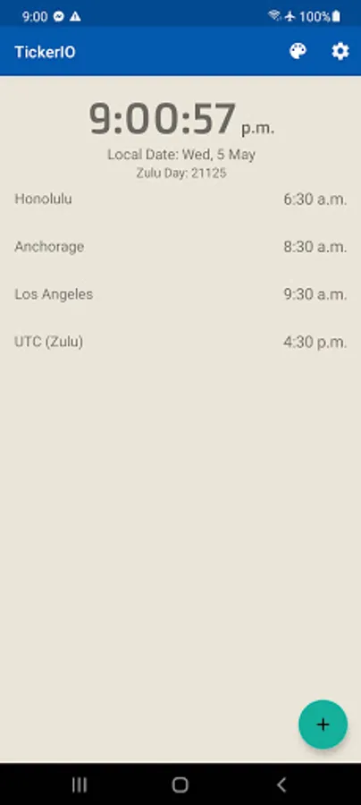 TickerIO is a free, minimalistic app to quickly display local and Zulu (military) time, as well as the julian dates for both. Features include a theme library for customization and a homescreen widget. Project is open-sourced and available on Github.