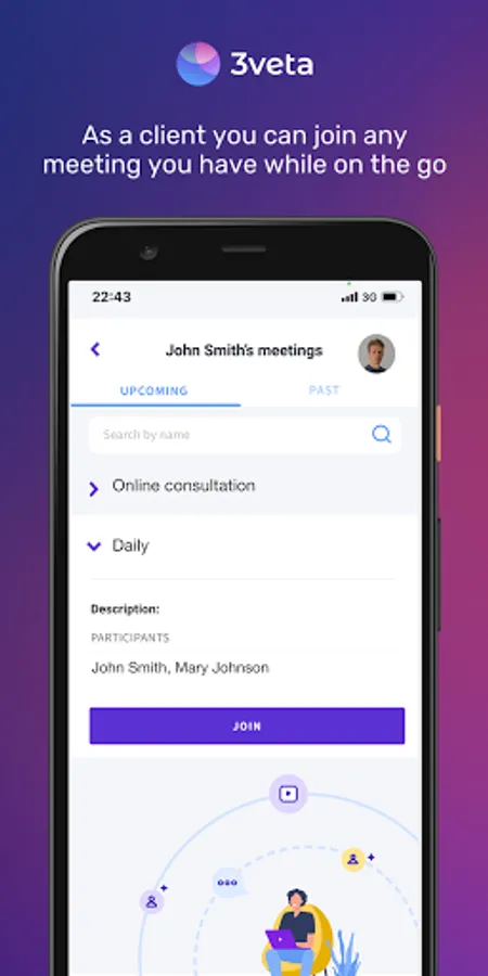 No matter if you are a lawyer, speech therapist, consultant, yoga instructor, a business coach or any other *service provider* that gets paid for their time and expertise, use the 3veta app to create online meetings, classes, and consultations on your own customized platform and get paid for your time, every time!