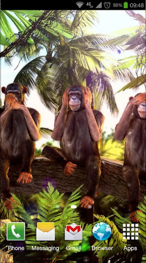 Installation: The main screen (long press) → Live Wallpaper → Three Wise Monkeys 3D