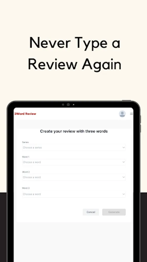 Simply select 3 words that describe how you feel and we will create a well crafted review for you using artificial intelligence.