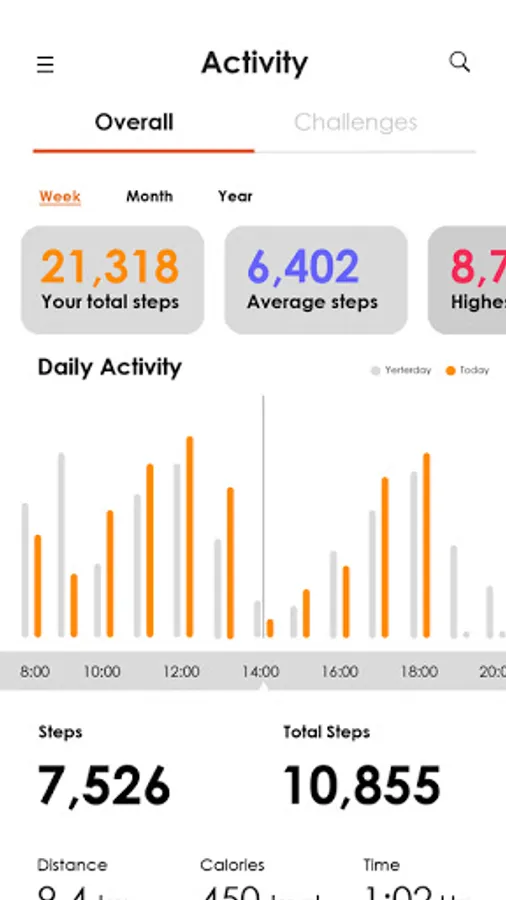Sync with wearables; steps, distance and calories burned