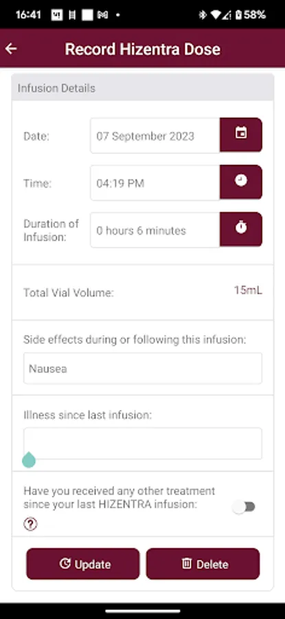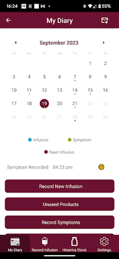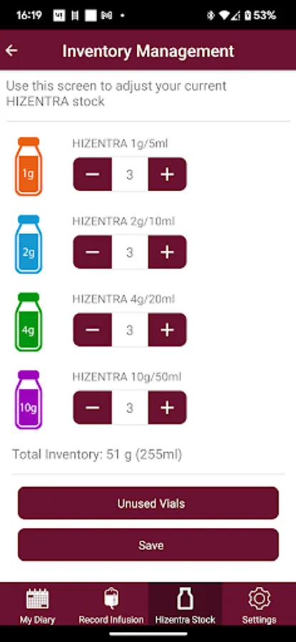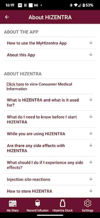 The app includes information about HIZENTRA and a patient diary to record HIZENTRA infusions. In the diary, patients can also track their symptoms and both the symptoms and infusion history can be exported to send to a patients nurse or doctor.