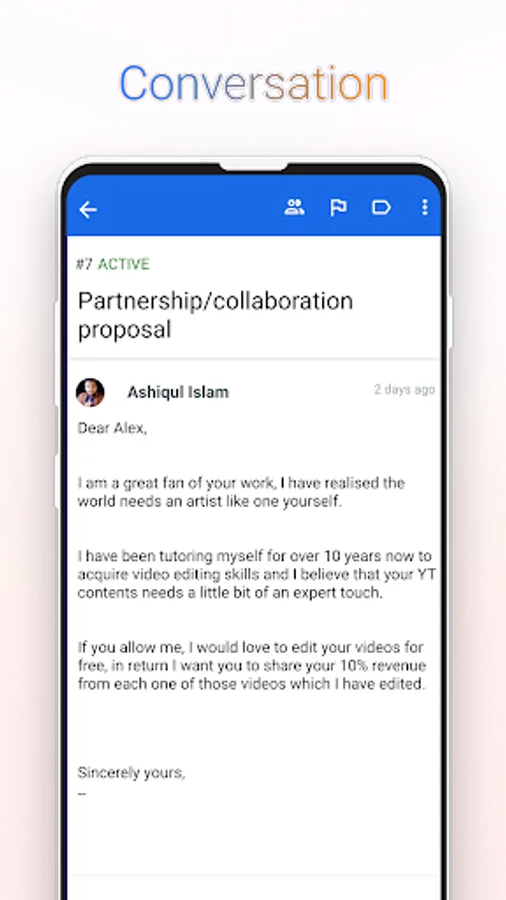 Anyone with an eCommerce business can and should use this customer service software to communicate with their customers for easy on the go support. Irrespective of whether you are a 2 member team or a large group of individuals, being on a shared inbox means the whole team is working on perfect synchronisation as to the status of the queries.