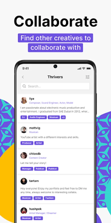 ThriveIN is a creative platform that allows talents such as singers, producers, musicians, models and others, to find each other, apply for jobs and other collaborative opportunities.