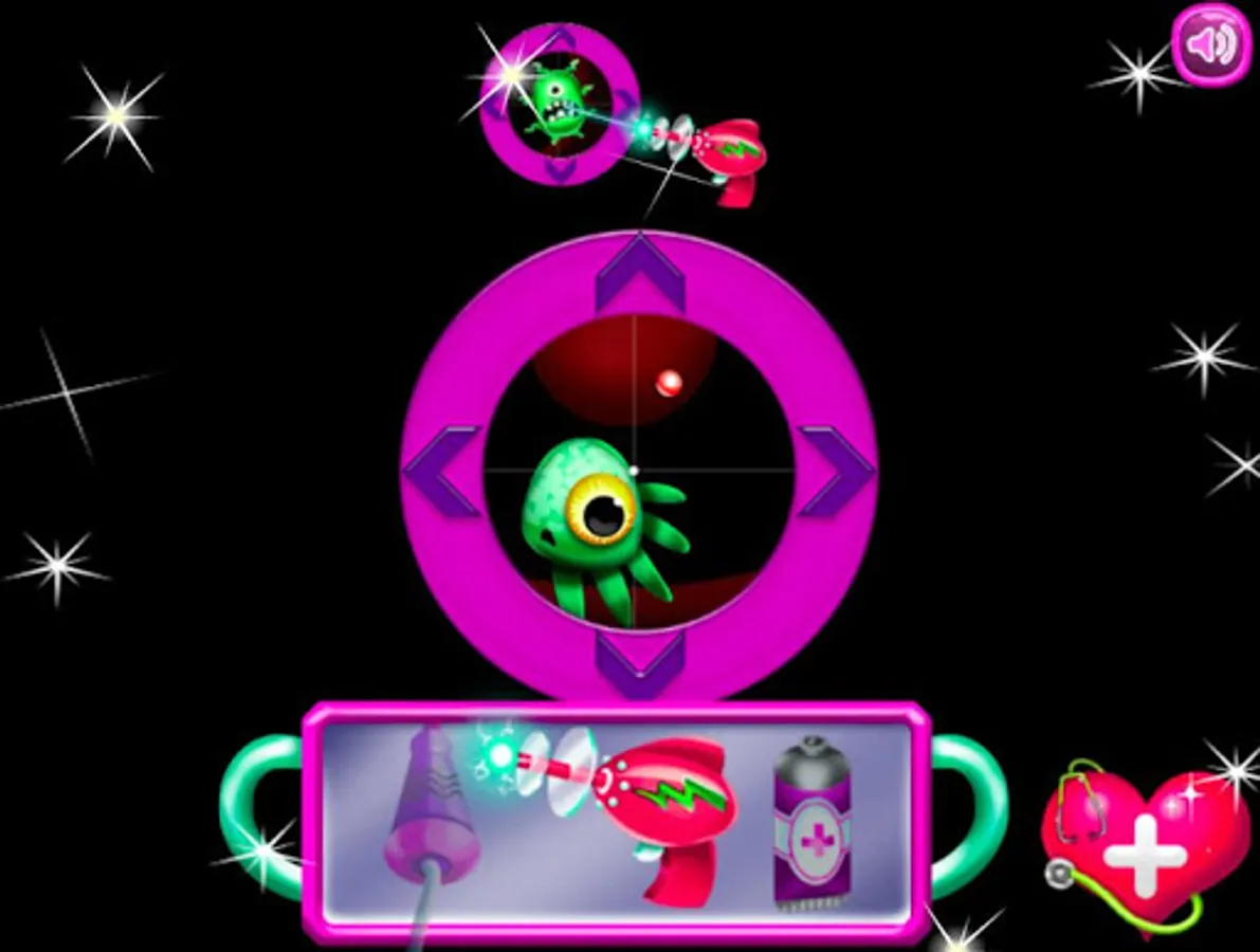 Super Doll's Sister has a throat infection! Let's go to the doctor and find out how we can help our patient. Use fun tools to treat the symptoms and then go even further getting a closer look with the magnifying glass. Find and destroy the germs doctor crazy using a laser gun and apply cream on the affected areas. The little one will be recovering in no time!