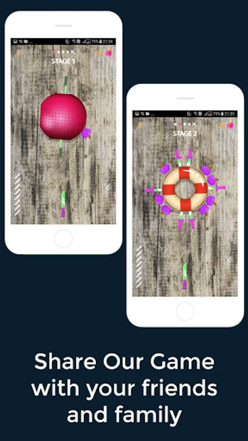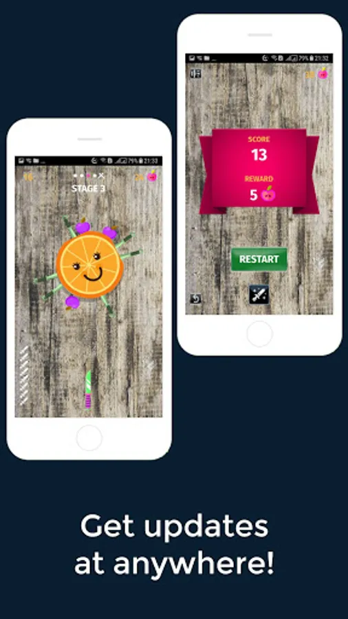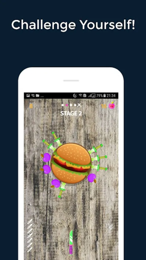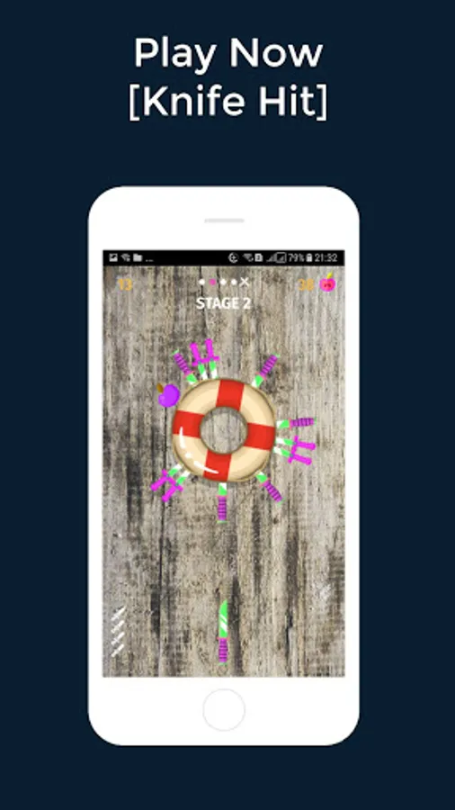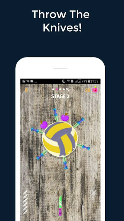 Target and throw the knives into the logs to break them. Slash the apples and unlock new knives. Each 5th stage is defended by a boss - beat them to get exclusive knives!