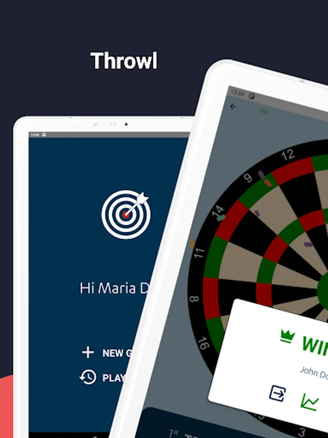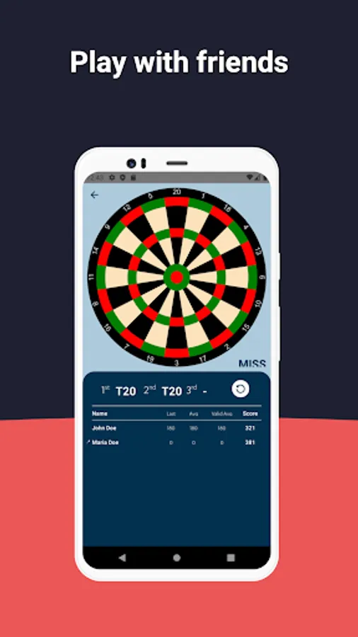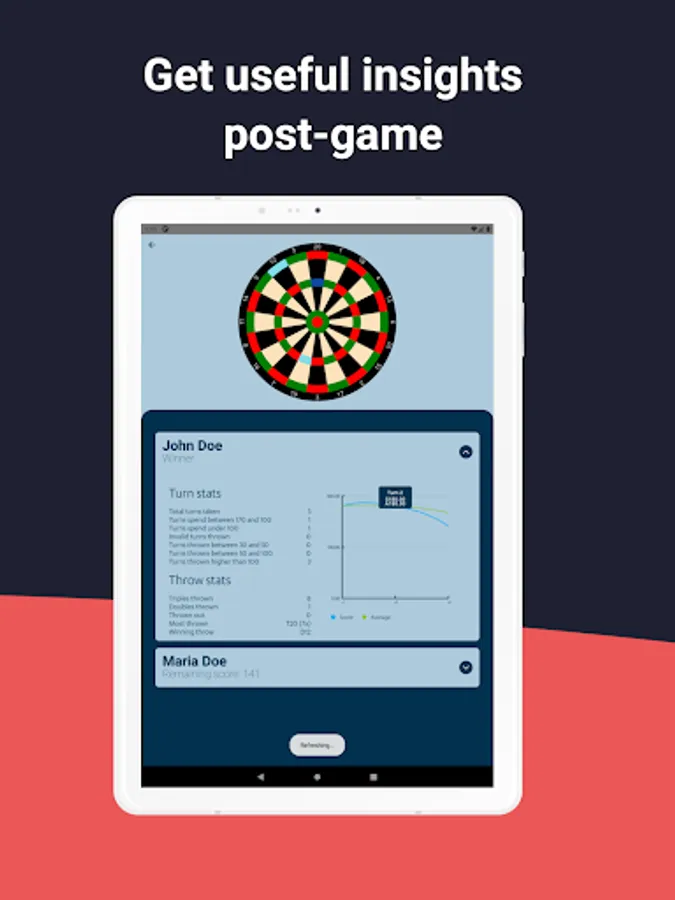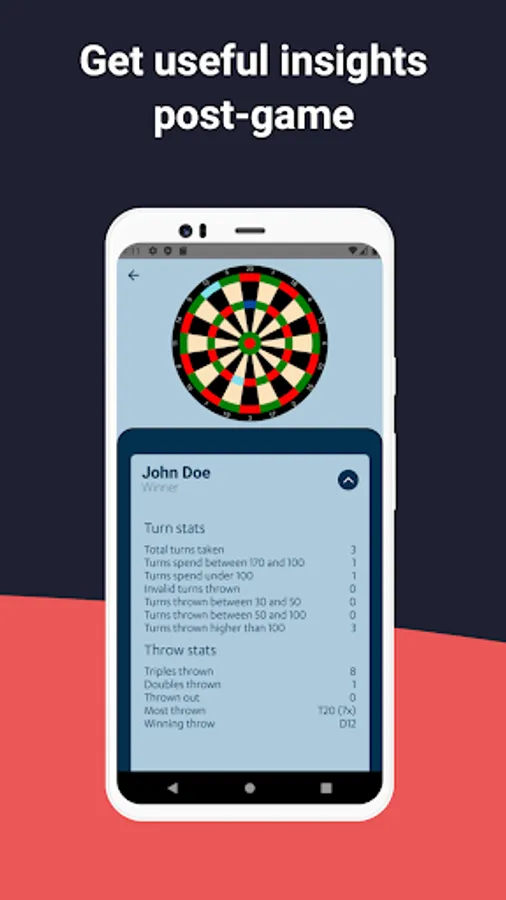Keep track of your dart game and gain useful insights in how your games went with statistics like most thrown and your average progression throughout the game.