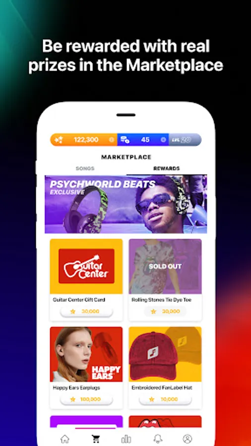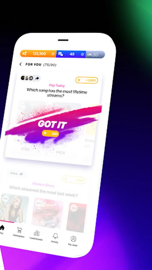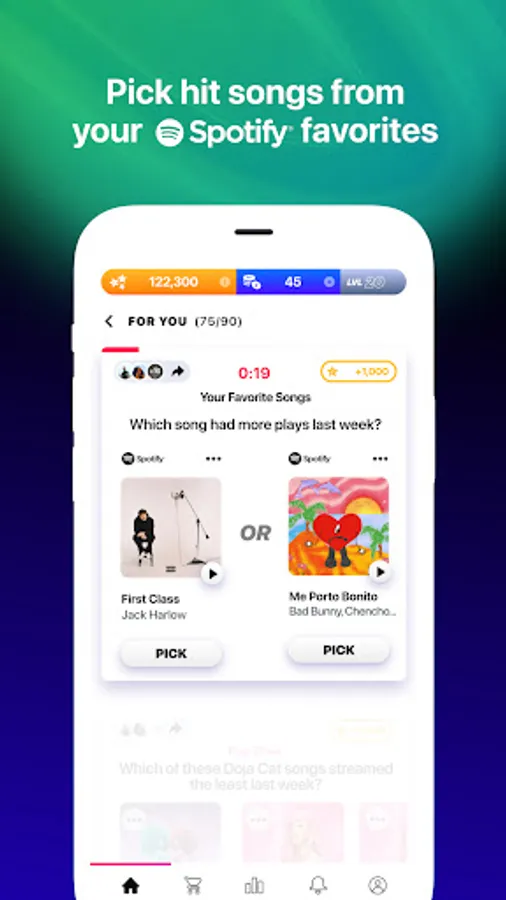 ▶ PLAY CHALLENGES — connect to Spotify, or choose your favorite genres, to play contests featuring hit songs and music you love. Use your points to buy real merch drops and exclusive experiences.