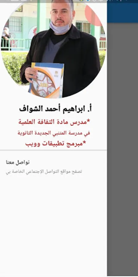 My binding application is the first application in which a summary of the educational units of the scientific culture subject is published according to the Palestinian curriculum