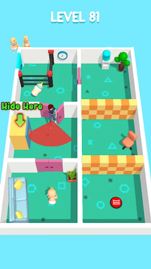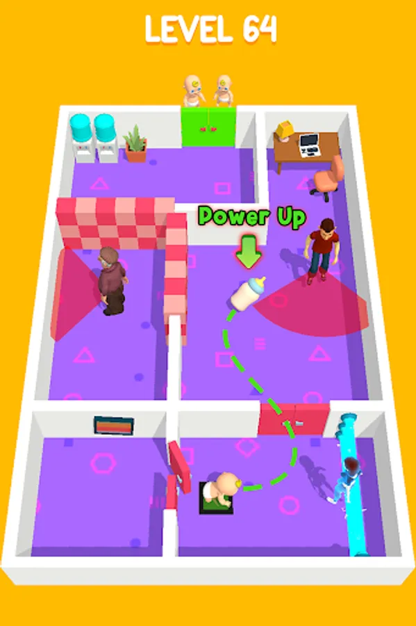 Dad Escape: Hide Little One! is just the enjoyable puzzle game you need. Each level is a setting of a room labyrinth, where you control a cute boy to pass through all obstacles and get to the exit door. Use your logic to overcome hundreds of challenging levels, especially adults who are looking for you to put you to bed. Don’t worry — you’ve got this! ✌️