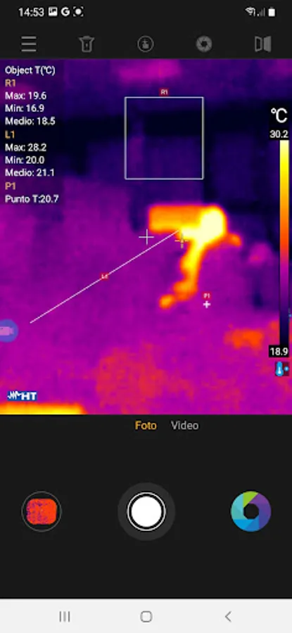 HT Smart Camera is a professional software to perform advanced analysis, share and view real-time thermographic images produced by HT ITALIA THT8 infrared camera, connected to mobile device via USB-C connection