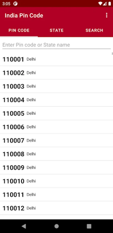 This is an offline application having details of PIN codes of India. You can search by: