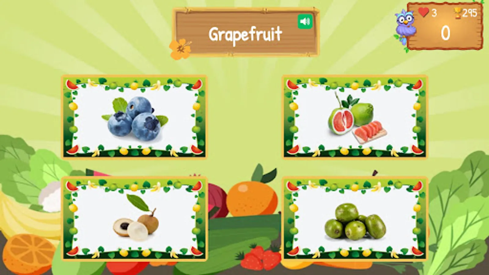 The application includes more than 50+ fruits with beautiful images and high quality sound. Along with that is how to read the names of fruilts in different languages including English and Vietnamese. After that, Children can play the Quiz to test their understanding of the discovered fruits.