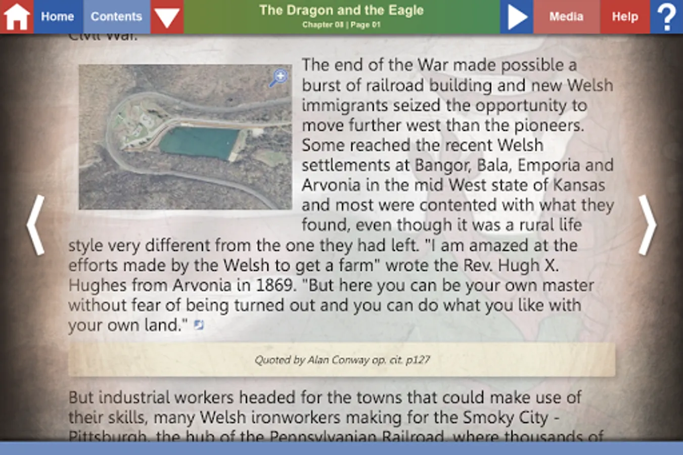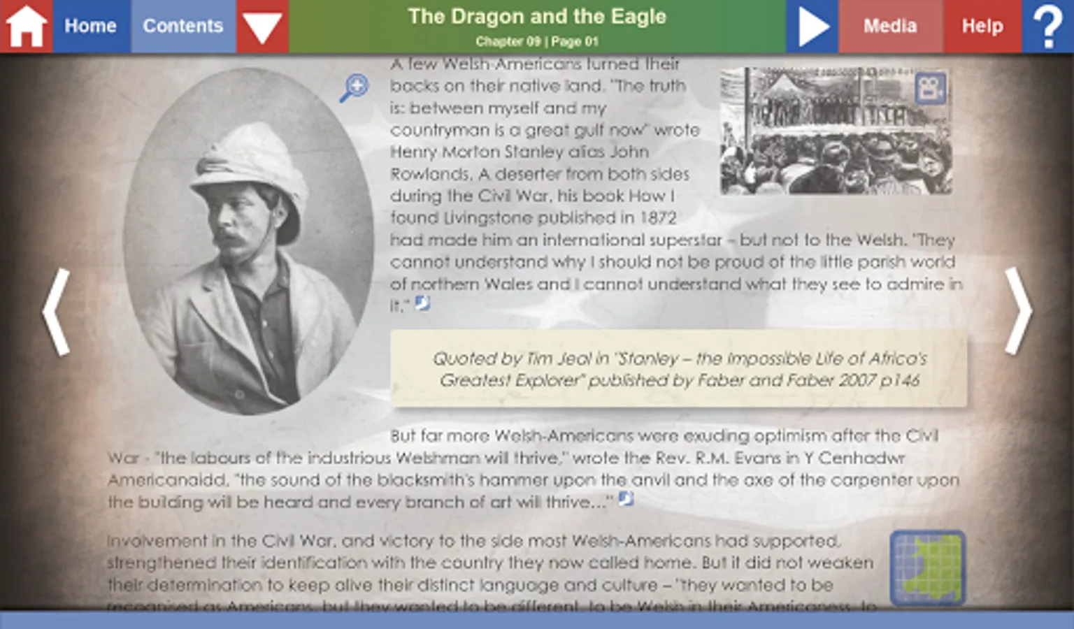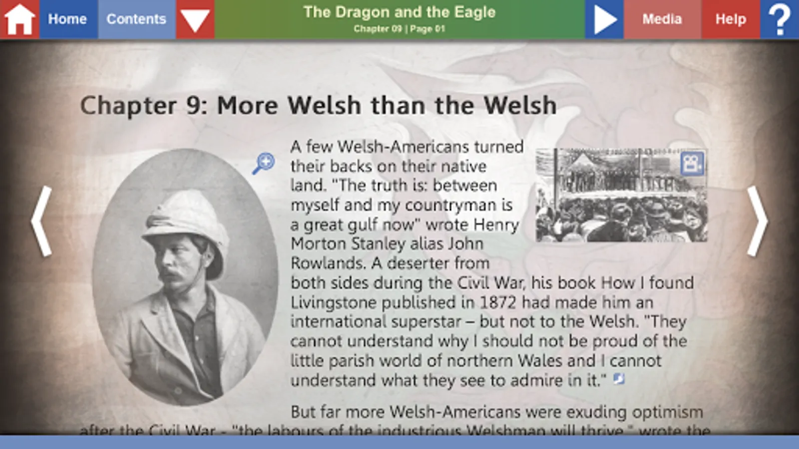‘The Dragon and the Eagle’ tells the remarkable story of those Welsh men and women who took the huge risk of leaving behind what they knew by starting a new life in America. Their history is relived through an enhanced eBook format, which supplements the text with a combination of images, interactive graphics, audio and video (narrated by Cerys Matthews). This creates a rich, varied reading experience while discovering the way in which Welsh emigrants became Welsh-Americans, and how they maintained their distinctive identity over four hundred years.