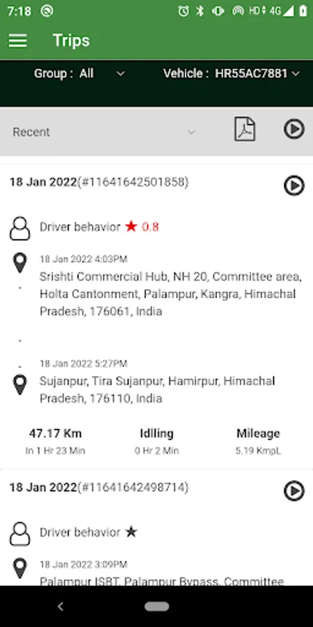 Tracking your vehicles by trip along with driving alarms and playing it back.