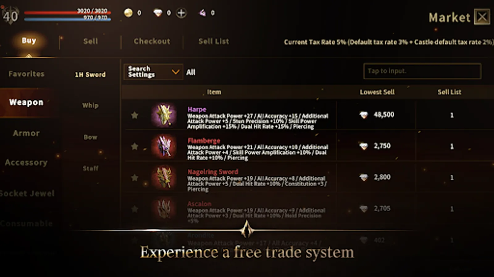 ◐ Trade: Freely buy and sell the items such as weapons, armor, skillbooks, etc.