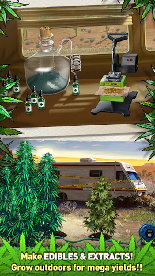 • Cultivate your weed farm empire with multiple strains of marijuana, including the well-known White Widow and Purple Haze, as well as the amazingly powerful and extremely beautiful Alien Weed