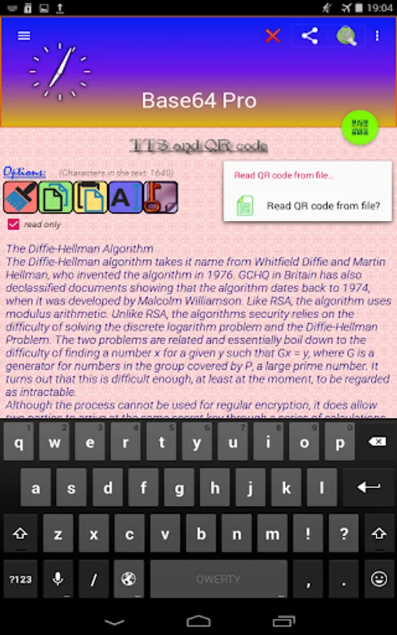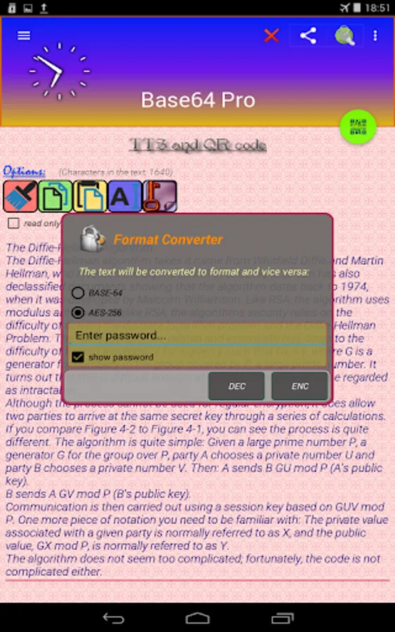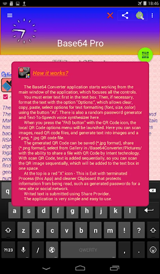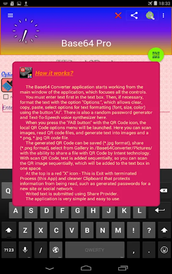 A simple and convenient utility application (Utility Program) for converting text to Base64 with the ability to work with QR Code, encryption and other options.