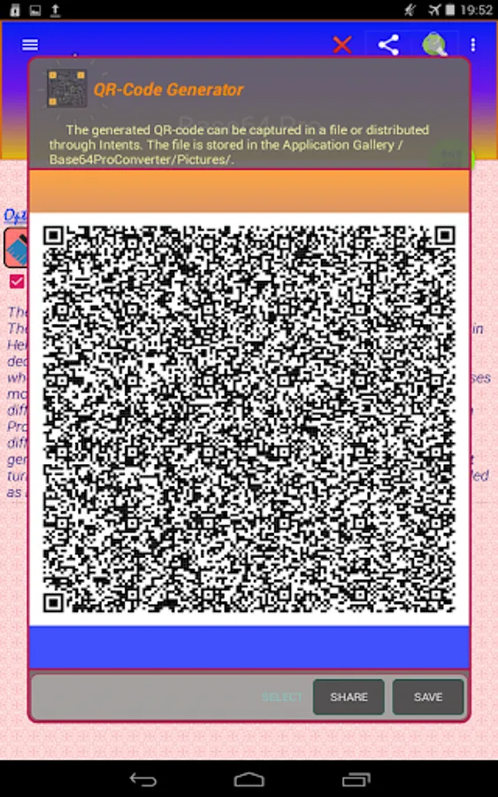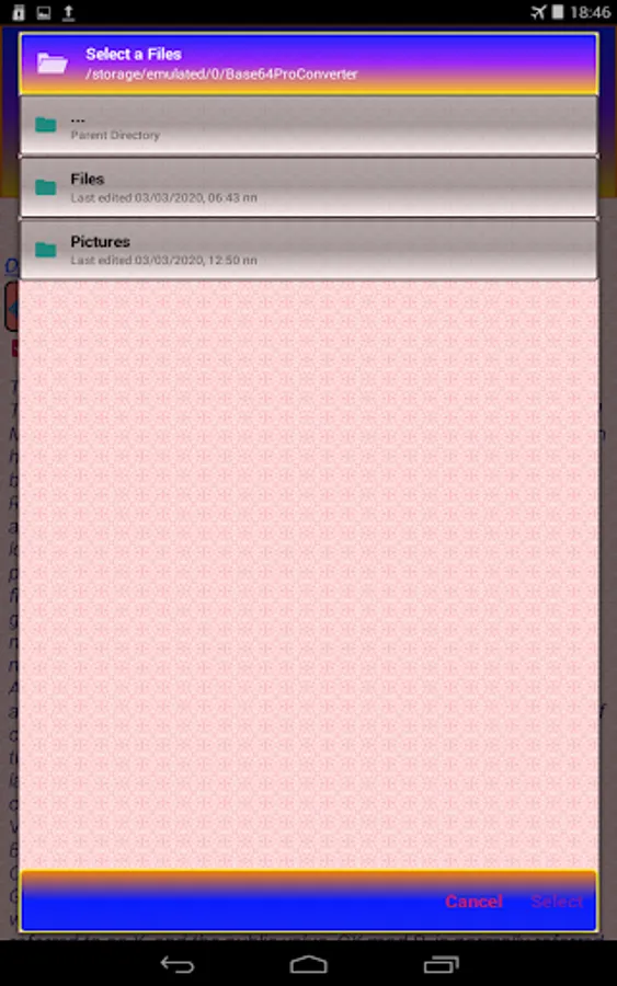 The application works with the application directory /Base64ProConverter/Files/ and /Base64ProConverter/Pictures/.