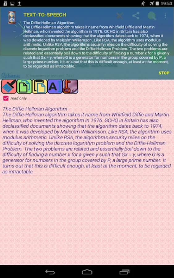 There is an additional option to change the text formatting options and there is the option of a Text-To-Speech voice synthesizer.