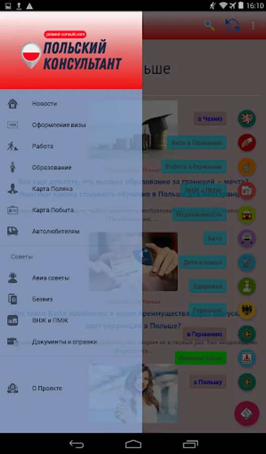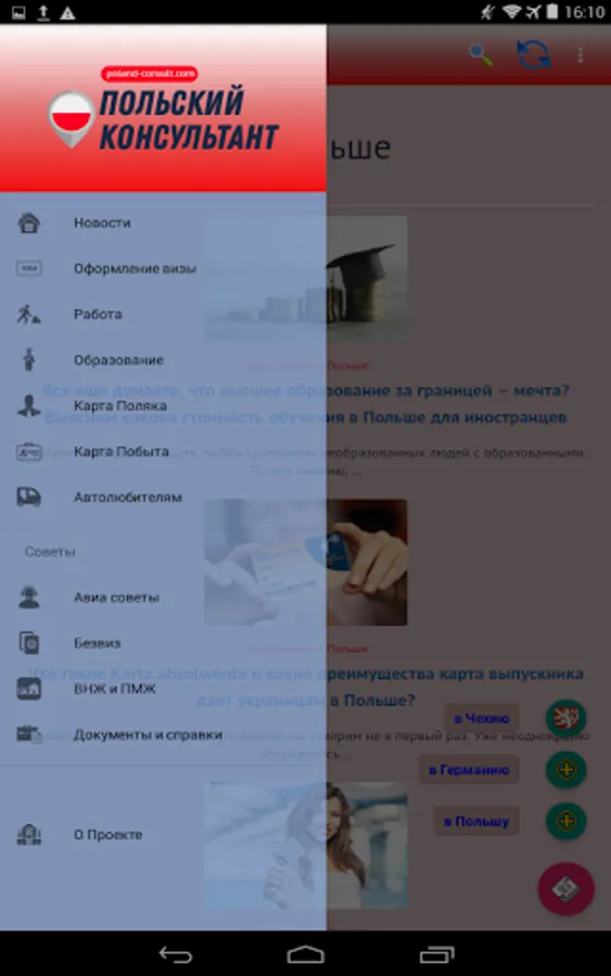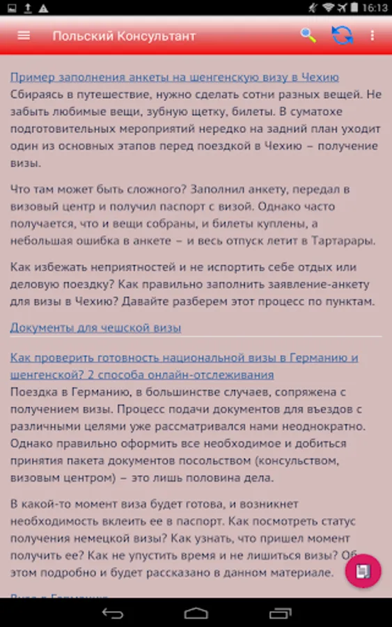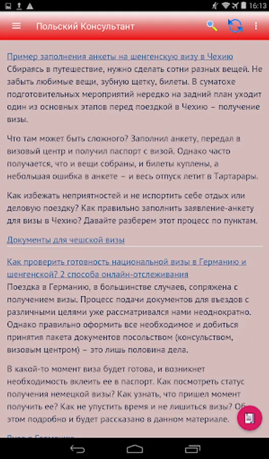 The application is a simple Web browser for the well-known magazine Polish Consultant, a resource designed to help all people who wish to connect their activities with foreign countries.