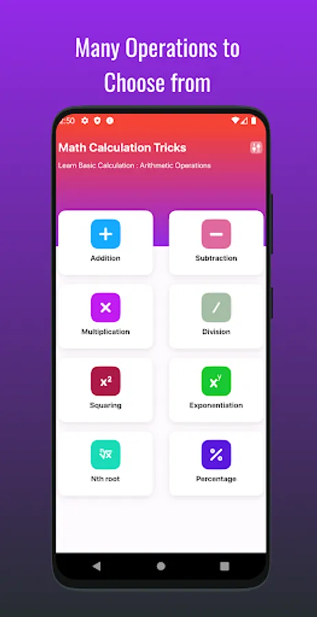 Math Calculation Tricks is not just another math app; it's your secret weapon to becoming a math genius. With a vast array of mind-blowing tricks and techniques, this app will empower you to solve complex math problems with ease and confidence. Whether you're a student looking to ace your exams or an adult striving to improve your math skills, this app has something for everyone.