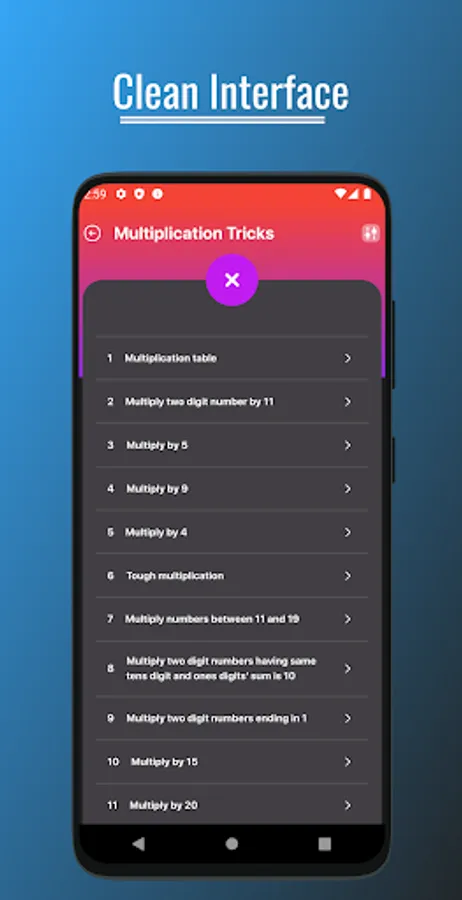 🎯 Master Math Basics: Start with the fundamentals and build a rock-solid foundation in math. Our app covers tricks for addition , subtraction , multiplication , division and many more.
